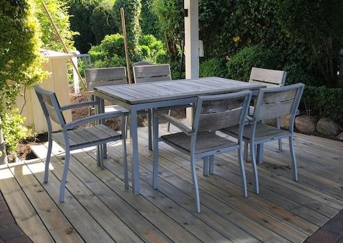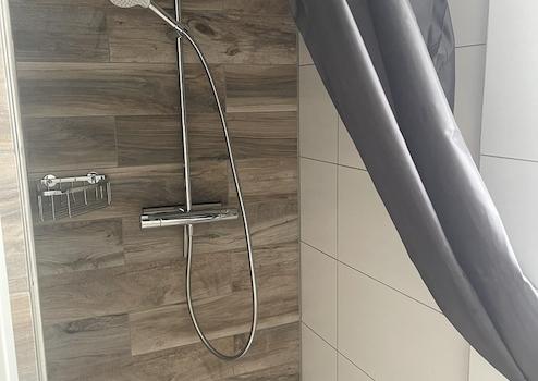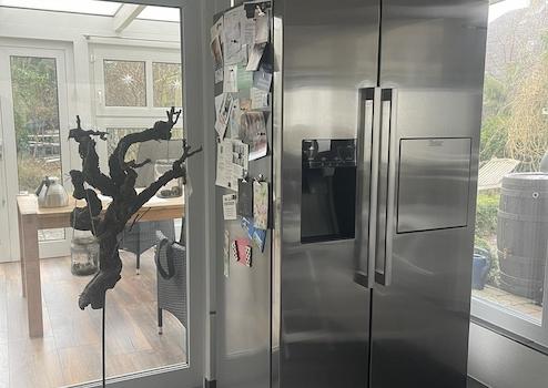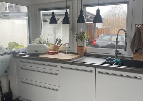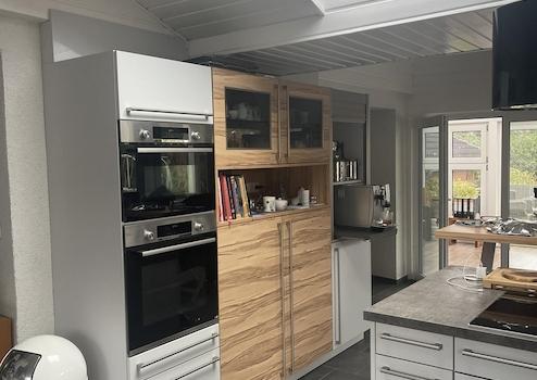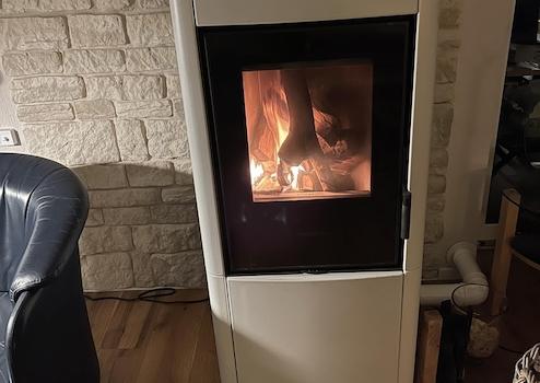 Die Ausstattung insgesamt ist neu und hochwertig. Ein Hybridofen sorgt im Wohnzimmer für Wärme durch Pellets oder Holz (fernsteuerbar durch App) und beheizt zusätzlich den Wintergarten.
