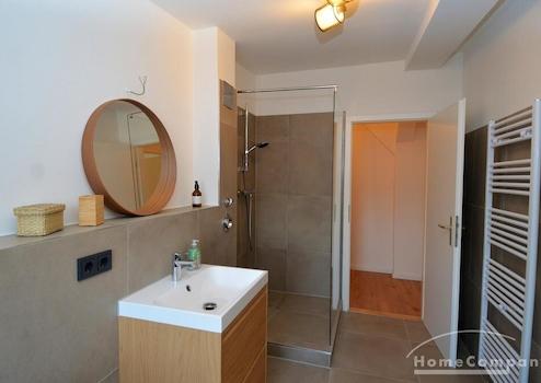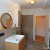 Das modern ausgestattete Badezimmer bietet neben einer Waschmaschine auch alle wichtigen Alltagsutensilien wie Handtücher und Seifenspender, sodass Sie sofort einziehen und sich wohlfühlen können.