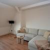 Der lichtdurchflutete Wohnbereich ist mit praktischen Rollos ausgestattet und geschmackvoll möbliert: Eine gemütliche Couch, ein Esstisch mit Stühlen, ein Sideboard sowie ein Fernseher schaffen ein einladendes Ambiente zum Entspannen und Ankommen.