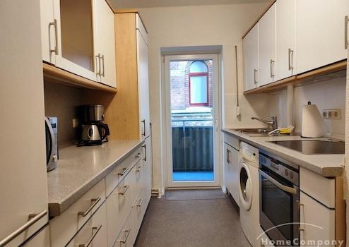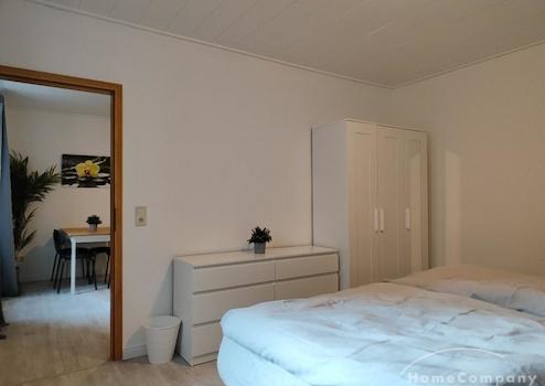 2 Zi.-Wohnung, möbliert, EG, mit Balkon (von der Küche aus zu begehen). Komplett ausgestattet. Wohnzimmer mit Essecke. 1 Schlafzimmer mit Doppelbett. Miete inkl. Neben- und Energiekosten sowie Internet-Anschluss 1600,- €. Nur für Nichtraucher.