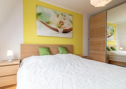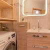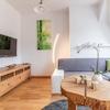 man Zugang zu einem sonnigen Balkon. Die Wohnung hat eine hochwertige, komplette Ausstattung. Das Bad verfügt über eine Wanne mit Duschabtrennung, ein WC und eine Waschmaschine/Waschtrockner.