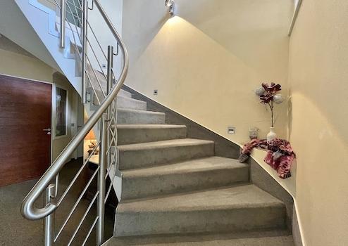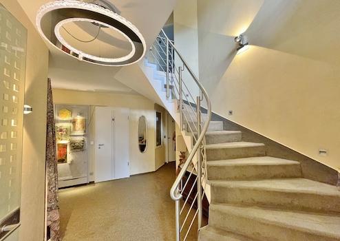 Eine Treppe mit hochwertigem Edelstahlgeländer führt in das Obergeschoss. Auch hier warten verschiedene Besonderheiten auf die neuen Hausbewohner: