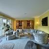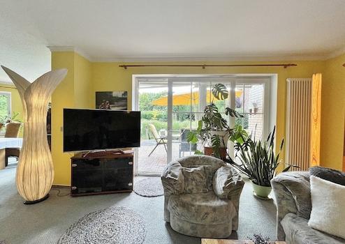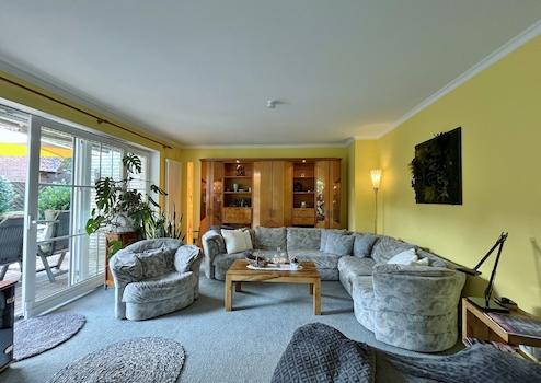 Neben dem wirklich geräumigen Wohn-Essbereich stellt das Kaminzimmer mit integrierter Bar, das zu gemütlichen Abenden einlädt, eine Besonderheit dar. Es lädt zu geselligen Abenden mit Freunden ein. Sehr praktisch durchdacht, wurde das Gäste-WC mit Dusche direkt daneben angeordnet.
