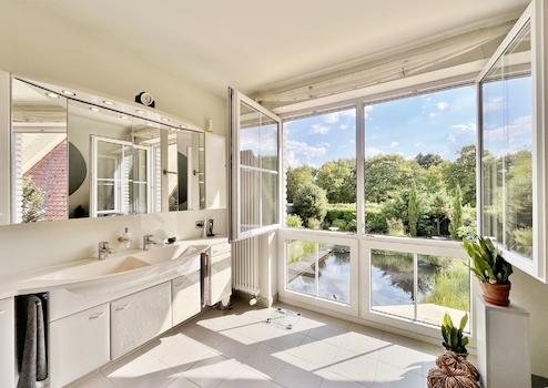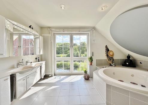 Das ca. 20 m² große Vollbad mit Whirlpool und allem, was für einen höchsten Komfort notwendig ist, zeigt seinen besonderen Charme.