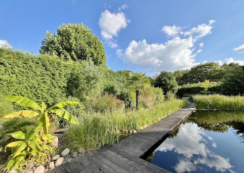 Dieses traumhaft schöne Niedrigenergiehaus im Standard von 2000 vermittelt sofort Wohlfühlatmosphäre. Das uneinsehbare Gartengrundstück mit mehreren kleinen Terrassen und einem attraktiven Schwimmteich mit Schilfzone macht jeden Tag zu einem ganz besonderen Moment der Privatsphäre.