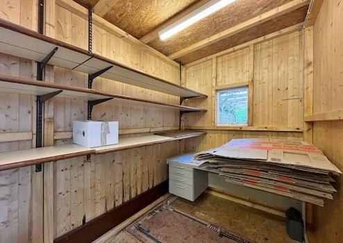 Ein seit mehreren Jahren ausgebauter Bodenbereich, der bereits eine Nutzungsänderung für Bürozwecke erfahren hat, wurde über der Doppelgarage zu einem Büro umgestaltet. Mit seiner beachtlichen Größe von ca. 56 m² bietet es Platz für ein bis fünf Arbeitsplätze. Infolge der Büronutzung wurde ein Schlafzimmer zu einer Küche umgestaltet. Die Anschlüsse wurden bereits während der Bauphase gelegt. Der zukünftige Eigentümer kann selbst entscheiden, ob er die Küche als auch das große Büro in dieser Form weiter nutzt oder ein Umbau zu Wohnzwecken bevorzugt.