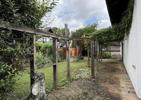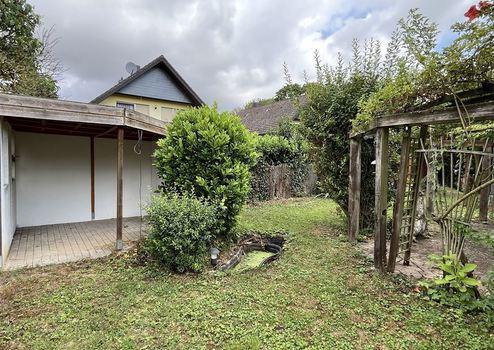 Zum Haus gehört ein Gartengrundstück mit Terrasse, überdachter Freisitz, ein Swimmingpool eine große Doppelgarage, Carport, Fertiggarage sowie Stellplätze.