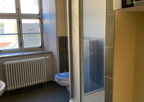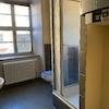 Der Flur verbindet das Wohnzimmer mit dem modernisierten Badezimmer, das mit einer komfortablen Duschkabine ausgestattet ist, sowie mit der einladenden Küche inklusive Einbauküche.