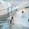 Über eine offene Treppe gelangen Sie in den Wohnbereich der oberen Etage. Hier dominieren lichtdurchflutete Räume mit hohen Decken und großen Fensterflächen. Besonders beeindruckend ist der verglaste Giebel mit einer Höhe von sieben Metern, der ein einzigartiges Raumgefühl schafft.