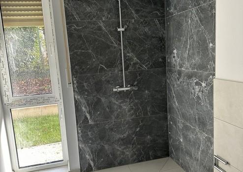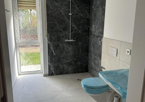 bodentiefe Duschen, gross, teilweise barrierefrei, bodentiefe Fenster, Fussbodenheizung, Palstring-Küchen