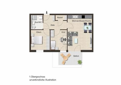 Die Wohnung Nr. 5 im Haus 1 liegt im Obergeschoss und bietet Ihnen 3 Zimmer mit einer Wohnfläche von ca. 67,01 m².