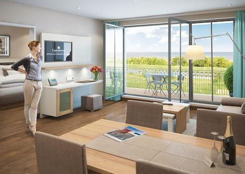 Das "Aparthotel WATERKANT SUITES" mit Wellness- und SPA Bereich zeichnet sich durch eine Top-Lage - nur ca. 30 m vom Strand ohne Strasse zwischen Gebäude und Wasser - und eine erstklassige Komplettausstattung aus (der Kaufpreis ist bereits INCLUSIVE der eleganten und geschmackvollen Möblierung vom Boxspringbett bis zum Teelöffel, INCLUSIVE Tiefgaragenstellplatz, INCLUSIVE Anteil an der "löffelfertig" ausgestatteten Gastronomie, INCLUSIVE der Baukosten für den eleganten Schwimmbad - und Wellnessbereich mit Saunalandschaft etc.). Hier ist es eine wahre Freude, seine Eigenbelegung auszunutzen und seinen Gästen exclusiven Hotelkomfort in großzügigen Suiten zu bieten.