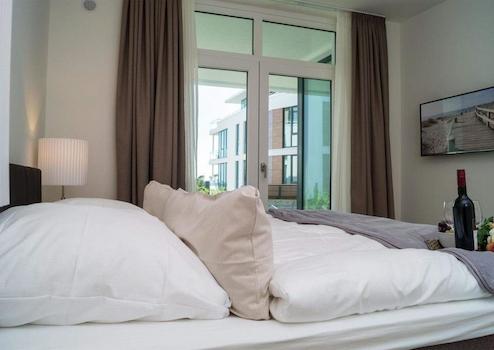 Das Ferienappartment verfügt über eine großzügige Terrasse, erstklassige Bau- und Ausstattungsqualität, Aufzüge von der Garage bis vor die Eingangstür und eine exclusive Komplett-Möblierung. (Im Kaufpreis bereits enthalten.) Im Haus H befindet sich ein eleganter Sport- und Saunenbereich, zu jeder Wohnung gehört ein Garagenstellplatz (im Kaufpreis enthalten):
