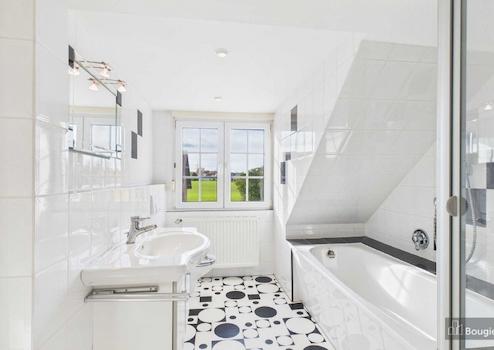 Das ausgebaute Dachgeschoss ist ein echter Rückzugsort: Umlaufende Fenster schenken Weite und Licht, während die warme Holzvertäfelung für eine besondere Atmosphäre sorgt. Das modernisierte Badezimmer macht diesen Bereich ideal für ein Atelier, Studio oder eine private Rückzugsetage – hier kannst du ungestört wohnen und arbeiten.