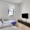 Ein besonderes Augenmerk liegt auf der intelligenten technischen Ausstattung: Die Fenster sind dreifach verglast und verfügen über elektrisch steuerbare Jalousien sowie vollflächig verschließbare Raffstores für vollständige Verdunkelung – ideal für Mediennutzung oder lichtempfindliches Wohnen. Die Sicherheitstechnik von Busch-Jäger inklusive Gegensprechanlage erfüllt höchste Ansprüche an Privatsphäre und Schutz.