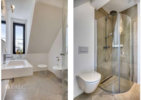 Drei luxuriöse Bäder bieten stilvollen Komfort. Das Masterbad überzeugt mit einer großzügigen Walk-in-Dusche mit „Shower Select“-System, einer freistehenden Wanne und einem direkt angrenzenden Ankleidezimmer. Alle Bäder wurden mit erlesenen Materialien ausgestattet und bieten einen Rückzugsort auf Spa-Niveau.