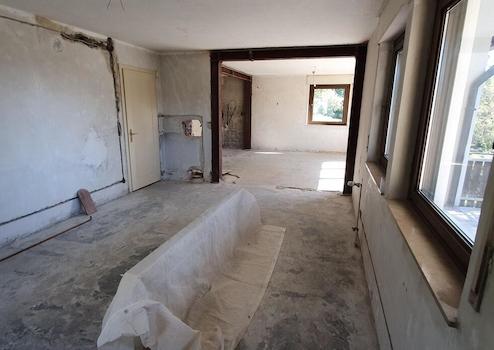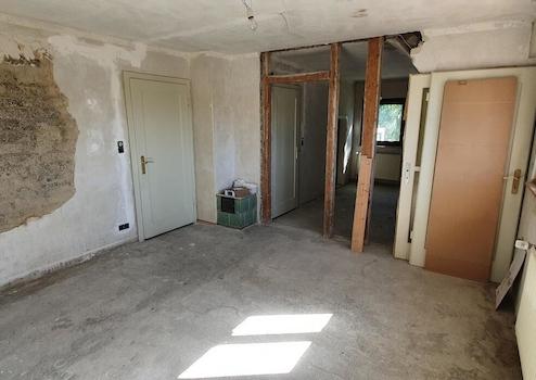 Das Haus ist bereits zum großen Teil entkernt und zur Neugestaltung vorbereitet.