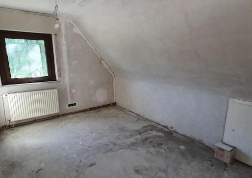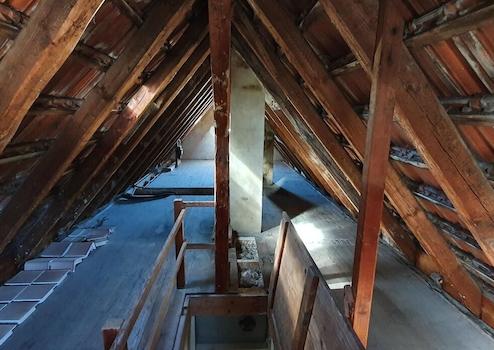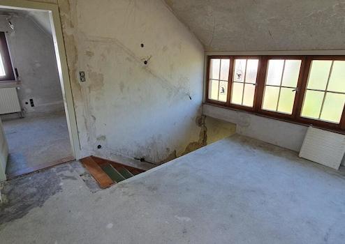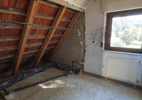 * Im Dachgeschoss sind die Dachverkleidungen entfernt.