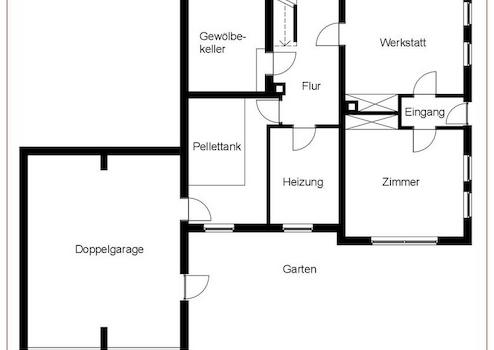 Ebenso gibt es einen direkten Zugang von außen ins Untergeschoss mit einem Wohnraum und angrenzender Werkstatt, sodass sich hier auch noch viele Möglichkeiten der Nutzung bieten.