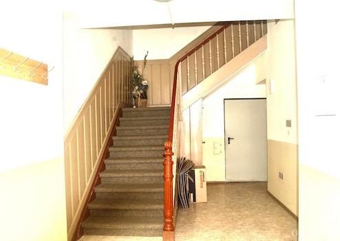 Durch den Hof und Garten kommen Sie im Erdgeschoss zu den Heizanlagen sowie zu den Nutzflächen/Räumen. Hier ist auch eine Verbindungstür zum Geschäftshaus. Im Hof befindet sich ein außenliegender Treppenaufgang zur Wohnung im Obergeschoss, diese hat ca. 110 qm.