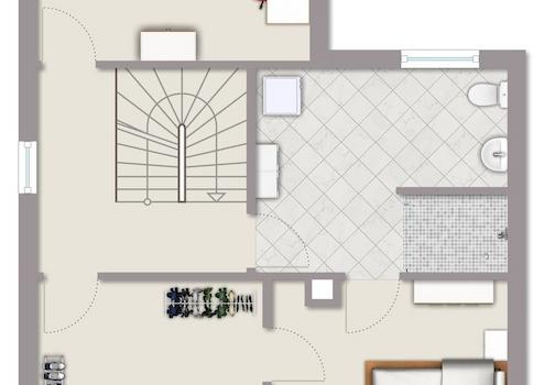Im Obergeschoss befinden sich das sanierte Badezimmer und drei Schlafzimmer.
