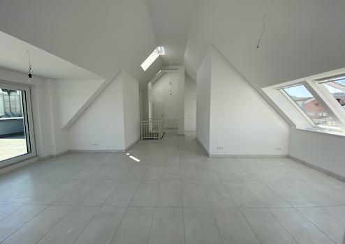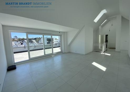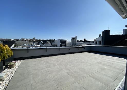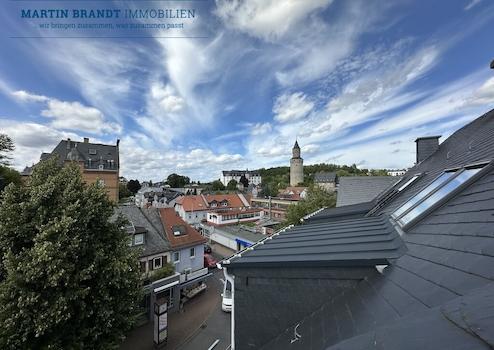Die bodentiefen Fenster im Wohnbereich sorgen hier für einen traumhaften Ausblick auf das Highlight der Wohnung, die angrenzende ca. 37 m² große Dachterrasse, welche nach Süd-Ost ausgerichtet liegt. Die repräsentative Dachterrasse befindet sich auf der Rückseite des Hauses mit Blick über die Dächer der Altstadt.