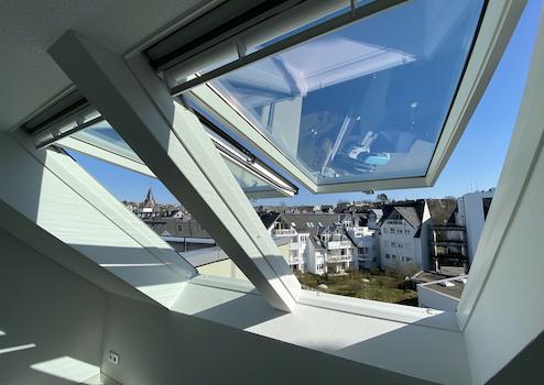 - Hochliegende Velux Dachflächenfenster mit elektrischen Rollläden