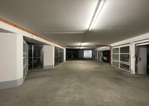 - Vergitterte Garagenboxen in der Tiefgarage mit Steckdose und Stromanschluss