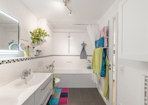 zwei geräumige Bäder mit Dusche bzw. Badewanne