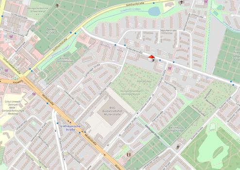 Das Anwesen befindet sich im nördlichen Wedding, im Englischen Viertel, mit einer Vielzahl an Grünanlagen und Plätzen sowie großflächige Kleingartenanlagen in der direkten Umgebung. Der Volkspark Rehberge, der Eckernförder Platz mit ca. 3,6 Hektar Waldfläche, das Freibad Plötzensee mit dem denkmalgeschützten Hauptgebäude oder der Nordhafenpark sind nur einige Beispiele.