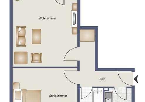 Beim Betreten der Wohnung fällt sofort die gut durchdachte Raumaufteilung auf. Sowohl das Wohn- als auch das Schlafzimmer sind großzügig geschnitten und durch große Fensterfronten mit viel natürlichem Licht versorgt. Eine Besonderheit der Wohnung ist die Nische im Flur, die sich hervorragend als Stauraum eignet. Die Diele selbst bietet sich hervorragend als Stauraum für große Schränke, als Büro oder sonstiger Arbeitsraum oder als Esszimmer an. Die Küche und das Badezimmer, beide mit Fenster, sind ausreichend proportioniert. Die Böden in den Hauptwohnbereichen sind mit Linoleum belegt, während Küche und Bad gefliest sind.