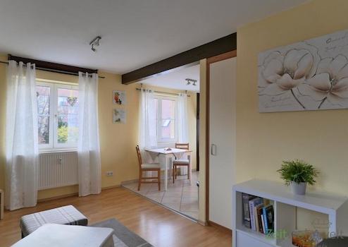### Please note the availability date! Bitte das Verfügbarkeitsdatum beachten! ### geschmackvoll möblierte Maissonette-Wohnung in DD-Breisnitz; WLAN und Waschmaschine vorhanden; unten: großes Wohnzimmer mit Sessel, Sofa und TV; offene Küche mit Esstisch am Wohnzimmer; Eingangsbereich mit Garderobe und Schränken; Bad mit Dusche, Wanne und WC; Innentreppe in den Spitzboden: Komode und Wandschränke; Schlafbereich mit großem Doppelbett; Pauschalmiete 890,00 Euro (bei 1 Person); Vermietung an max. 2 Personen; Kaution 1.200,00 Euro; Endreinigung Mietersache; Mindestmietdauer 3 Monate; Pflichtangaben zum Energieausweis: Energieausweis gültig bis: 22.01.2031; Baujahr Gebäude: 1937; Energieausweis: nach Verbrauch; Energieverbrauch: 110.0 kWh/(m²a); Energieeffizienzklasse: D; Primärer Energieträger: Holzpllets