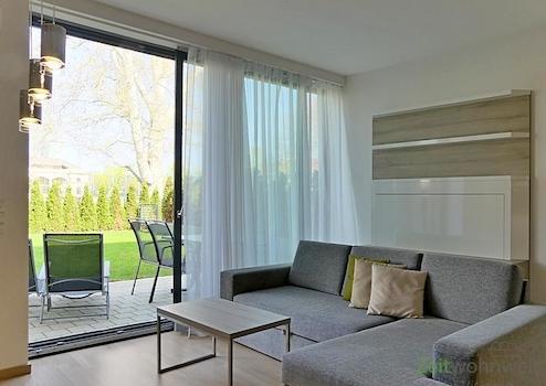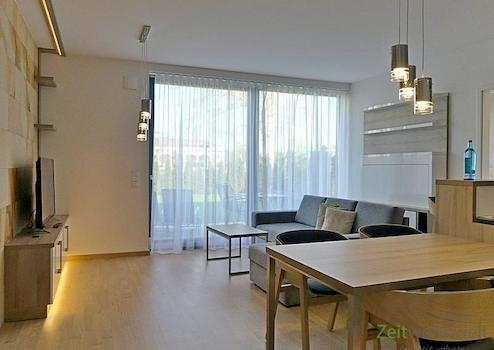 ### Please note the availability date! Bitte das Verfügbarkeitsdatum beachten! ### modern gestaltetes Apartment mit WLAN, Parkettböden, Fußbodenheizung, Terrasse und eigenem Garten (ca 62m²); großes Wohnzimmer mit großer Couch, Esstisch und TV; moderne Küche mit Esstisch; Schlafzimmer mit Doppelbett, TV und Blick in den Garten; vorderes Bad mit Dusche, WC und Waschmaschine; hinteres Bad mit Doppelwaschtisch, WC und Whirlpool-Eckbadewanne; eigene Sauna; großer Eingangflur mit Garderobe; Aufzug im Haus; diverse Service-Leistungen inklusive; Tiefgaragenstellplatz auf Wunsch anmietbar; Pauschalmiete 2.530,00 Euro ab einer Mietdauer von 6 Monaten; wird. an max. 2 Personen vermietet; Kaution 4.000,00 Euro; Endreinigung Mietersache; Mindestmietdauer 2 Monate; Pflichtangaben zum Energieausweis: Energieausweis gültig bis: 06.09.2026; Baujahr Gebäude: 2016; Energieausweis: nach Bedarf; Energieverbrauch: 78.0 kWh/(m²a); Energieeffizienzklasse: C; Primärer Energieträger: Nah-/Fernwärme, KWK + fos; Hilfsenergie Strom