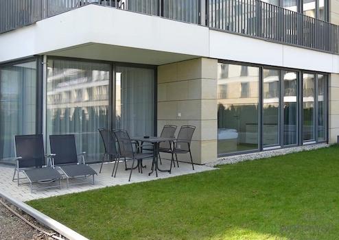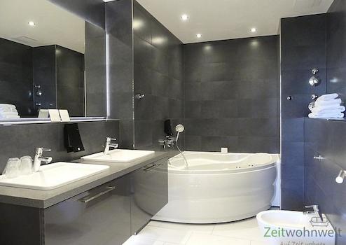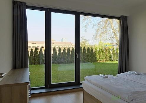 ### Please note the availability date! Bitte das Verfügbarkeitsdatum beachten! ### neu möbliertes Apartment mit 2 Schlafzimmern, überdachter Terrasse und eigenem Gartenanteil (ca 68m²); WLAN; Parkettböden mit Fußbodenheizung; großes Wohnzimmer mit Esstisch, großer Couch, TV und Garten- / Terrassenausgang; moderne Kücke mit Sitzplatz; linkes Schlafzimmer mit Doppelbett und TV; rechtes Schlafzimmer mit Doppelbett und Blick auf den eigenen Garten; hinteres Bad mit Doppelwaschtisch, WC und Whirlpool-Eckbadewanne; vorderes Bad mit Dusche, WC, Sauna (!) und Waschmaschine; großer Eingangflur mit Garderobe; Aufzug im Haus; diverse Service-Leistungen inklusive; Tiefgaragenstellplatz auf Wunsch anmietbar; Pauschalmiete 3.250,00 Euro ab einer Mietdauer von 6 Monaten; wird an max. 4 Personen vermietet; Kaution 4.000,00 Euro; Mindestmietdauer 2 Monate; Endreinigung Mietersache; Pflichtangaben zum Energieausweis: Energieausweis gültig bis: 06.09.2026; Baujahr Gebäude: 2016; Energieausweis: nach Bedarf; Energieverbrauch: 78.0 kWh/(m²a); Energieeffizienzklasse: C; Primärer Energieträger: Nah-/Fernwärme, KWK + fos; Hilfsenergie Strom
