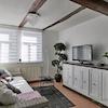 ### Please note the availability date! Bitte das Verfügbarkeitsdatum beachten! ### höbsche möblierte Wohnung in ruhiger Wohnlage in Waldkappel; WLAN; großes Wohnzimmer mit modernen rustikalen Möbeln, Sofa, Esstisch, ...