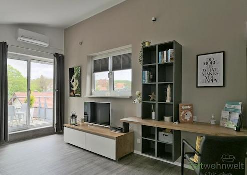 ### Please note the availability date! Bitte das Verfügbarkeitsdatum beachten! ### moderne, neu möblierte Wohnung mit Klimaanlage am Erfurter Hopfenberg; Waschmaschine und Trockner, WLAN und PKW-Stellplatz inklusive, Wallbox für E-Auto vorhanden; großes Wohnzimmer mit Wohnlandschaft, Schreibtisch, Sideboard und TV; offene Küche mit Tresen und Esstisch; sehr großer Balkon mit Sitzmöbeln; geräumiges Schlafzimmer mit Doppelbett und Kleiderschrank; Bad mit Dusche und WC; Wohnungsflur mit Garderobe; die angegebene Miete von 1.415,00 Euro setzt sich zusammen aus Pauschalmiete 1.365,00 Euro zzgl. NK-Vorauszahlung 50,00 Euro für Strom; Kaution 1.900,00 Euro; Mindestmietdauer 3 Monate; Pflichtangaben zum Energieausweis: Energieausweis gültig bis: 02.02.2031; Baujahr Gebäude: 1935; Energieausweis: nach Verbrauch; Energieverbrauch: 148.0 kWh/(m²a); Energieeffizienzklasse: E; Primärer Energieträger: H-Gas/Schweres Erdgas