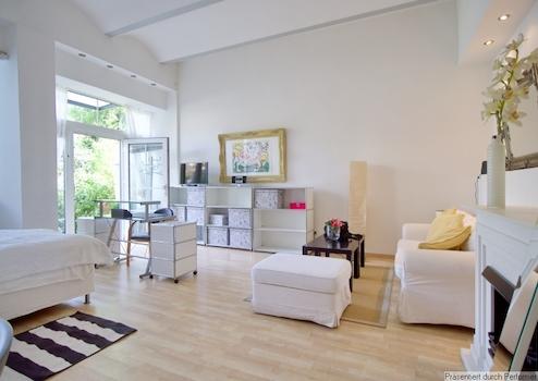 Diese schöne möblierte Apartmentwohnung befindet sich in einem ansprechend gestalteten Hinterhof mit mediterranem Flair. Ein PKW-Stellplatz liegt im vorderen Bereich, getrennt von der Wohnanlage, und kann bei Bedarf gegen einen Aufpreis von € 90 pro Monat angemietet werden. Über eine kleine, wunderschön bepflanzte Terrasse betritt man einen großen und hellen loftartigen Raum. Hier wurden die Bereiche Wohnen, Arbeiten, Entspannen und Schlafen sowie die offene Küche perfekt aufgeteilt. Das Badezimmer mit Rainshower und Waschtrockner befindet sich am Ende des Raumes. Es handelt sich um eine Nichtraucherwohnung.