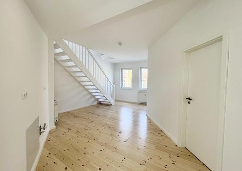 Diese 4-Zimmer-Maisonettewohnung in der Altstadt von Bad Belzig erstreckt sich über das 1. Obergeschoss und das Dachgeschoss eines Mehrfamilienhauses und bietet auf ca. 82 m² eine klare und gut nutzbare Raumaufteilung. Die Wohnung wurde 2024 umfassend renoviert. Echtholzdielen, helle Räume und der Zugang zu einer eigenen Terrasse im Innenhof schaffen ein gepflegtes, wohnliches Gesamtbild.