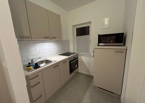 Derzeit befindet sich in der Wohnung jedoch eine fast neue, maßangefertigte Einbauküche (siehe Foto), welche der Vormieter eingebaut hat.