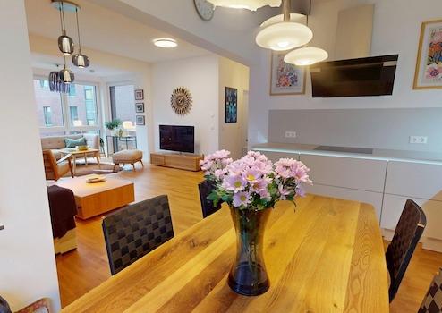 Die Wohnung liegt direkt an der Seepromenade und dennoch nur etwa sieben Gehminuten vom Bahnhof entfernt. Die Innenstadt mit ihren Geschäften, Restaurants, Cafés und kulturellen Einrichtungen – darunter die bekannte Kulturkirche – erreichen Sie auf schönen Wegen in weniger als 900 Metern.