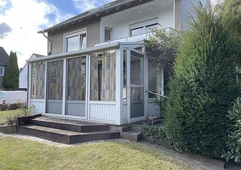 Eine 3ZKB Wohnung im Erdgeschoss besitzt einen Wintergarten und ist derzeit bewohnt.