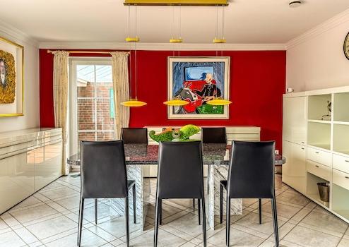 Die bodentiefen Fenster sorgen für viel Licht und gewähren einen herrlichen Blick in den Garten mit Teich, Terrassen und Wintergarten. Der Außenbereich bietet Privatsphäre durch dichte Bepflanzung, eine große Sonnenterrasse mit elektrischer Markise, einen Pavillon sowie eine zusätzliche Holzterrasse am Wasser.