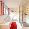 - Elternbad mit Dusche, Badewanne, Doppelwachbecken, Bidet und WC