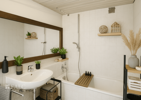 Das Badezimmer ist mit einer Badewanne ausgestattet und erfüllt alle Anforderungen für den täglichen Komfort – egal, ob es schnell gehen soll oder ob Sie sich Zeit für Entspannung nehmen möchten.