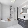 - Modernes Badezimmer im Loft-Stil mit Badewanne und Regendusche