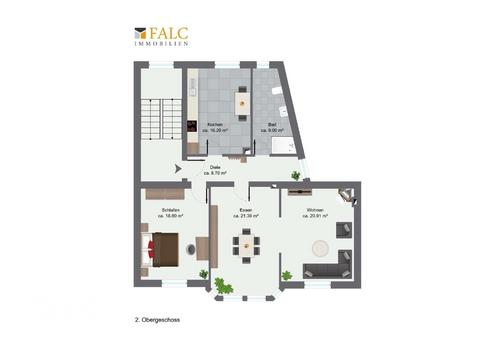 Zur Vermietung steht diese attraktive 2-Zimmer-Wohnung im 2. Obergeschoss eines gepflegten Mehrfamilienhauses aus dem Jahr 1910 mit nur 5 Wohneinheiten. Auf ca. 94 m² Wohnfläche überzeugt die Wohnung durch ihr klassisches Altbauflair, großzügige Räume und eine besonders helle, freundliche Atmosphäre.
