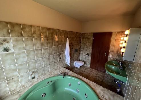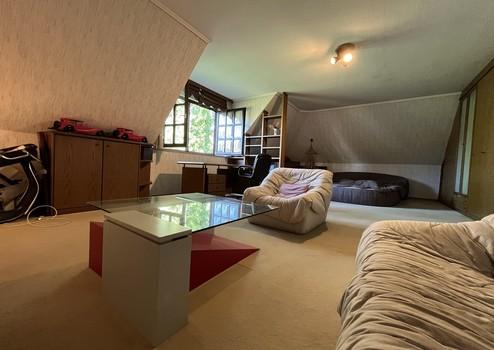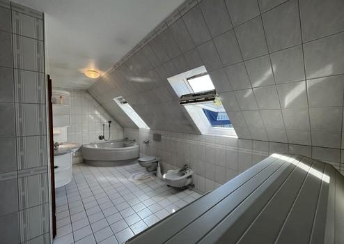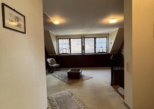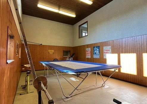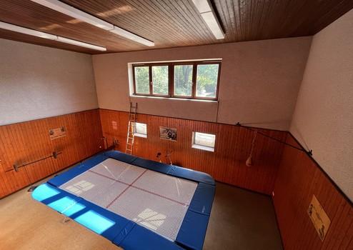 Ein besonderes Augenmerk verdient der im Keller gelegene Fitnessbereich mit viel Tageslicht und einer Deckenhöhe von fast 5,50 m! Ein großes Trampolin, sowie Fitnessgeräte der 80er Jahre haben dort ihren Platz gefunden. Dieser fast 45 m² große Bereich ist nicht Teil der Wohnflächenberechnung!