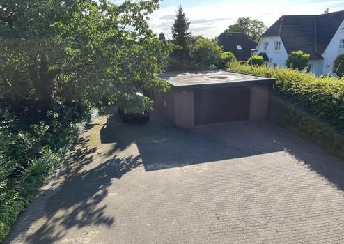 Die großzügig und mit Granitstelen eingefasste Auffahrt führt zum rückwärtigem ca. 320 m² großen, gepflasterten hinteren Teil des Grundstücks.