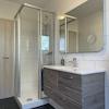 Die Sanitäreinrichtung passt perfekt zu diesem Ambiente und wurde genauso installiert, wie im Grundriss vorgeschlagen. Eine moderne Dusche mit niedrigem Einstieg befindet sich in der südöstlichen Ecke.