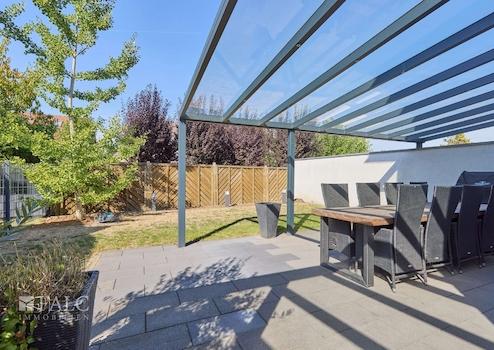 Durch die Nordost-Ausrichtung wird der hautsächliche Teil Ihres Gartens den ganzen Tag über von Sonne versorgt, während Sie unter der Terrasse gemütlich und schattig sitzen.